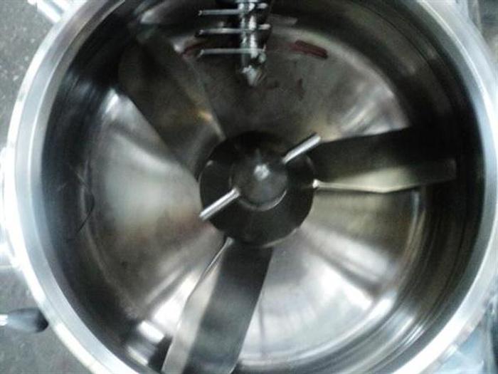 One used 25 liter Fuji Sanyo high shear granulator, model FM-VG-25P, 316 stainless steel construction, 25 liter gross capacity, 15 liter net capacity, jacketed bowl, 3.7 kw, 220 volt main drive, 300-600 rpm, 1.5 kw, 220 volt chopper drive, 3600/1800 rpm, serial# 883170. 25 liter Fuji Sanyo High shear Granulator