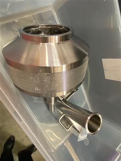 One Used 2008 Lab Coater Capacity Size 0.6Kg-0.8Kg/l w/ Outlet Hepa Filter w/ hose diameter of 4" inches. Power is 240V/1Ph/60Hz O'Hara Technologies LCM Pan Coater w/ 12" & 8.5" Pans