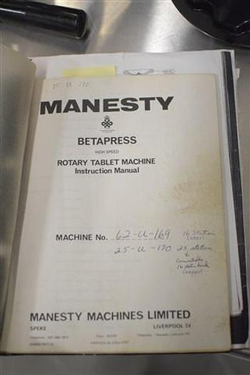 Used Manesty Betapress rotary tablet press, 16 station, keyed upper punch guides, 5/8" max tablet diameter, 11/16" max depth of fill, rated up to 1500 tablets/minute, serial# 12U1NO. As Is. Manesty Betapress